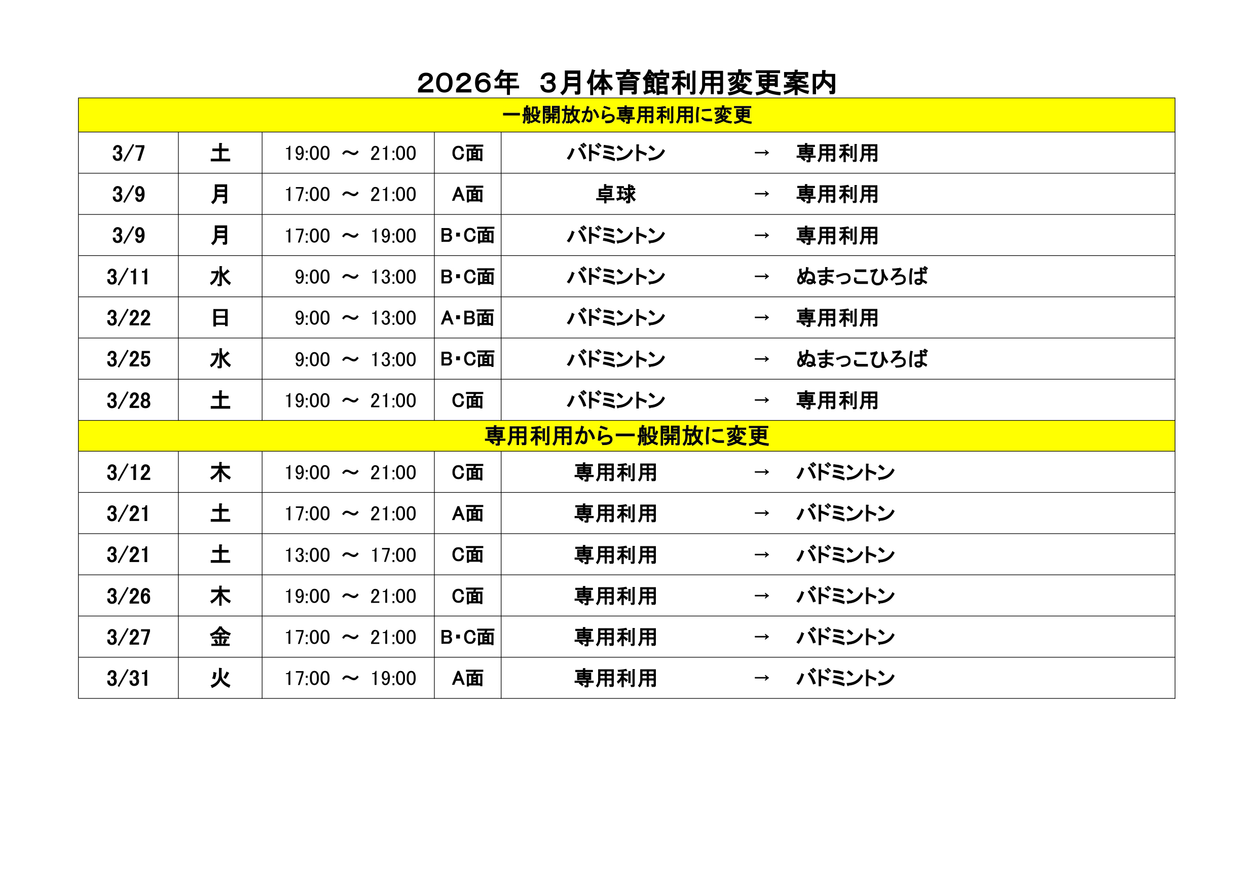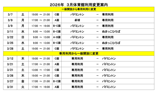 体育館利用変更案内